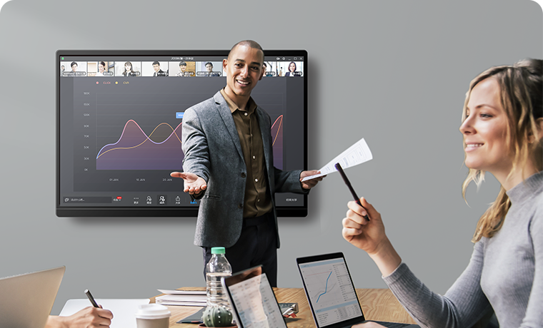 MAXHUB 打破单一功能的产品逻辑,集高质量显示、触摸书写、无线传屏等功能于一体,兼容多种远程会议软