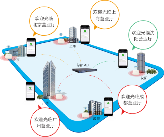 分行、支行、营业厅同一组网,一次认证多网点有效,不同网点间漫游无需重新认证;