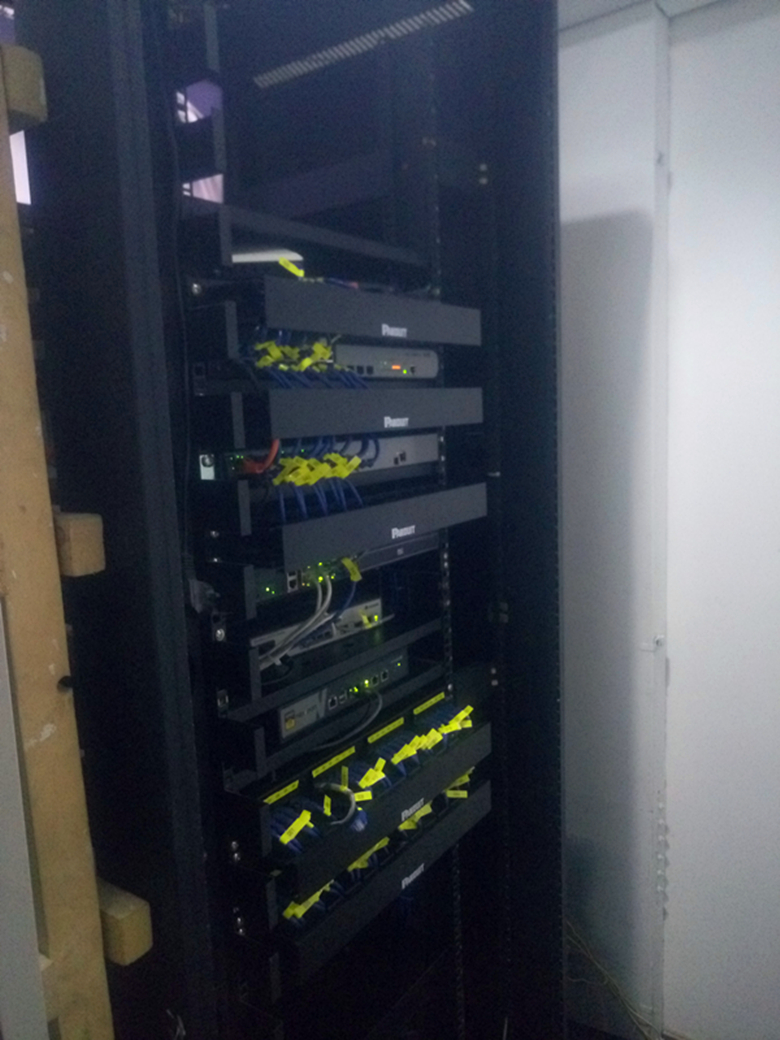 通过图片可以看出那是相当的乱啊,线乱堆、设备乱放、乱固定,能清楚的看到,很多线都是随便一束然后用胶带固定起来,甚至机架都有很多地方用的胶带缠上的。都9102年了,大家能想象还有这样的机房吗?乱和无序就是对这个机房最适宜的评价了。 乐玩LEWIN工程师看到这样的情况,也没有退缩,迎难而上。设备下架、线路整理、设备安放等等,一切都有条不紊。改造后的机房焕然一新,和改造前简直是天壤之别,眼见为实一起来看看吧!