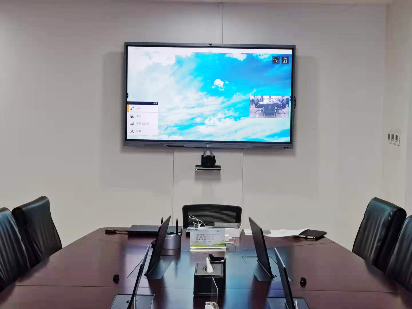 乐玩LEWIN时代专业施工,改原投影仪为会议显示终端小间距LED大屏,亮度和清晰度满足企业会议需求;桌面升降电视升级为桌面液晶升降屏;视频切换更换为数字高清视频矩阵处理器;壁挂电视机更换为智能交互触摸屏;视频会议采用软硬件两种方式,硬件为亿联高清视频会议,软件会议为原系统软件。