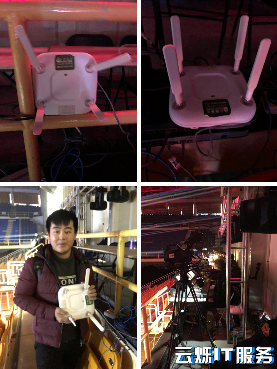 接下来就是AP的布置,这在高密WiFi会场来说是重要一项,在设置好所有AP后,云烁的工程师要测试各个点位WiFi速度、信号强度及稳定性!