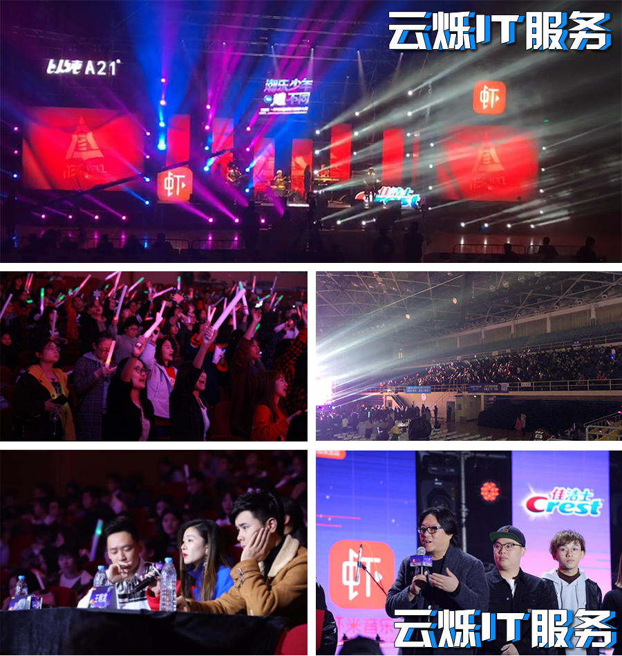 高密WiFi覆盖案例:虾米音乐校园歌手总决赛:近日,由阿里巴巴旗下虾米音乐联手国际知名洗护巨头保洁举办的“潮乐少年耀不同”校园歌手总决赛在北京大学生体育馆举办 ,八三夭以一首《渴了》火爆开场,瞬间点燃全场的热情!