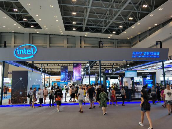 和华为展区间隔不远的就是英特尔展区了。英特尔以“创新加速”为主题,向广大游客开放了最新的电脑芯片产品和网络加速技术体验,吸引了众多的游客!