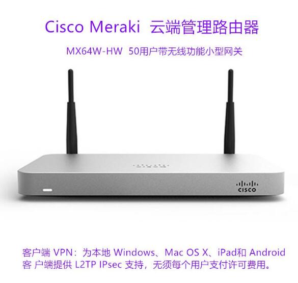 Cisco Meraki云端管理路由器MX64W-HW50用户带无线功能小型网关:
