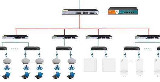 一般客房区域选用普通的吸顶无线AP,能够满足大部分区域的无线覆盖即可,适当允许少数无线盲区。豪华客房等高端宾客区域可选用面板无线AP,保障最佳的无线覆盖效果,提供最好的住宿体验。餐饮、会议室等人员密集型区域,采用支持高密度接入的吸顶双频无线AP,满足同时多人接入的需求。