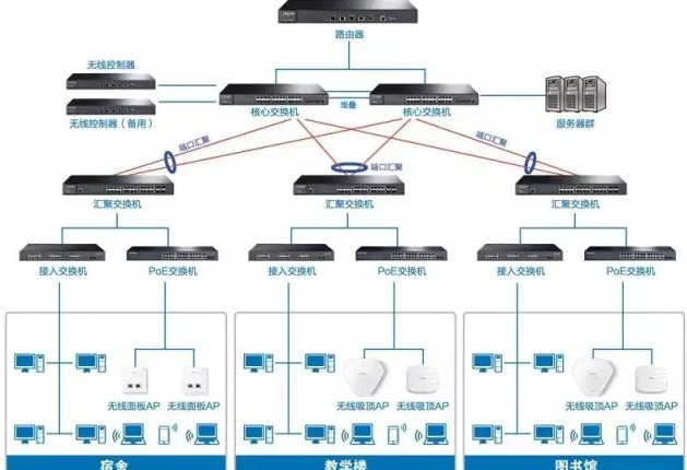 1、有线无线一体化网络覆盖,满足老师和学生随时随地上网的需求