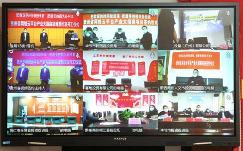 MAXHUB搭载视频会议软件,通过视频直播、远程连线、云签约等方式助力贵州、广州等地的多个签约仪式顺利进行,助力地方政府防疫管控和复工复产两不误。