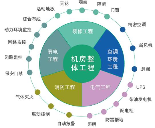 土建工程:机房环境工程、办公区环境工程、辅助环境工程。