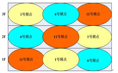 一般来讲,AP的信号发散是采用“环形覆盖”,不同的AP设备,信号发散的强弱程度也不同。而除了这些之外,信道也会对无线信号产生相当大的影响,信道间的相互干扰,一般可以采取“蜂窝式”放置,简单来讲,就是相邻楼层之间AP的摆放点不在同一条信道之上。