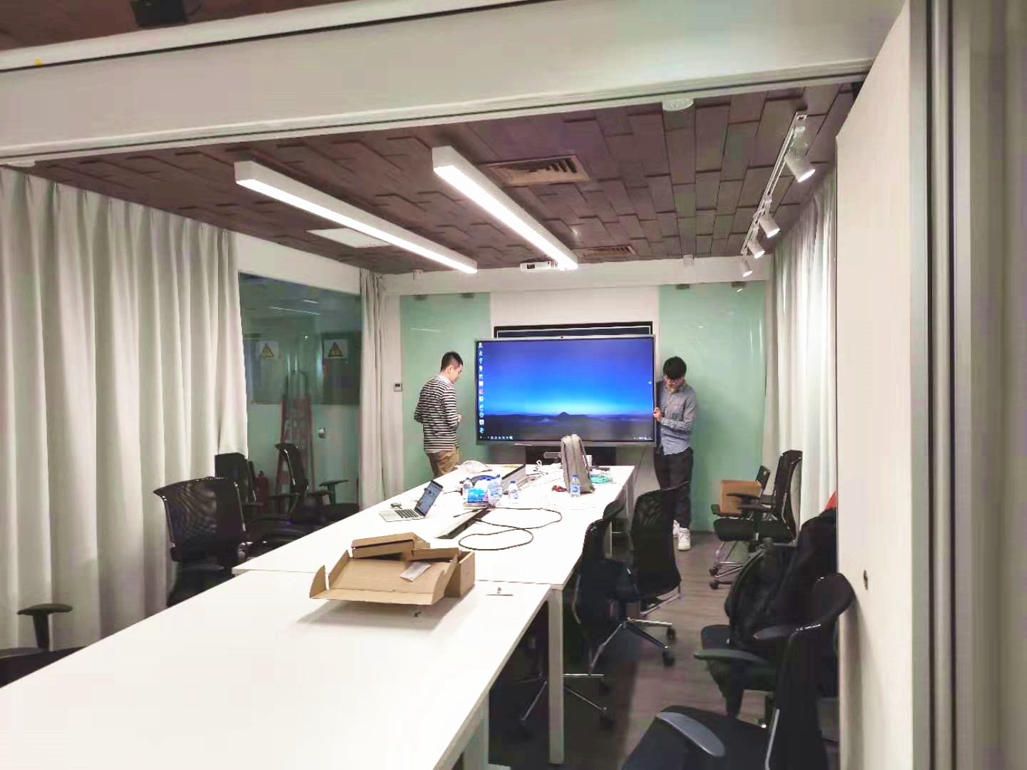 乐玩LEWIN时代现场安装MAXHUB视频会议终端产品,替换原有过于画面声音卡顿,反应慢且功能单一的陈旧设备,使企业用户利用SKYPE即时通讯软件,通过软视频终端,借助vpn与国外多个企业开视频会议。